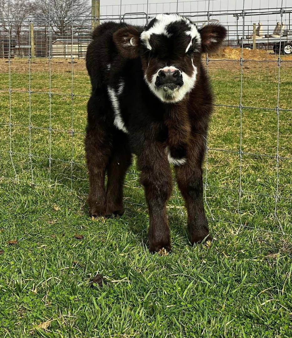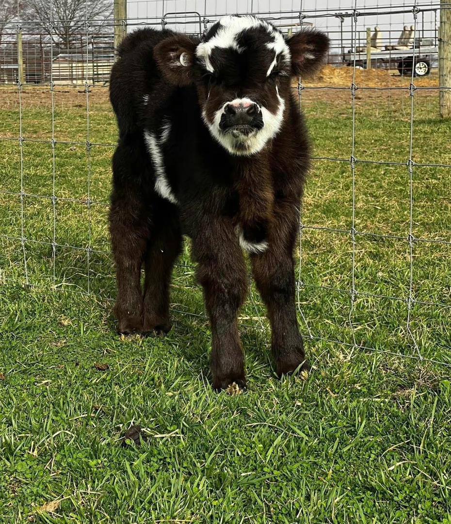 Clover is a powerful, well-built miniature Highland bull calf with outstanding structure and eye-catching presence. He’s pasture-raised, healthy, and developing into an excellent future herd sire with strong potential for any miniature Highland breeding program.