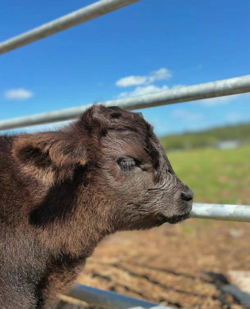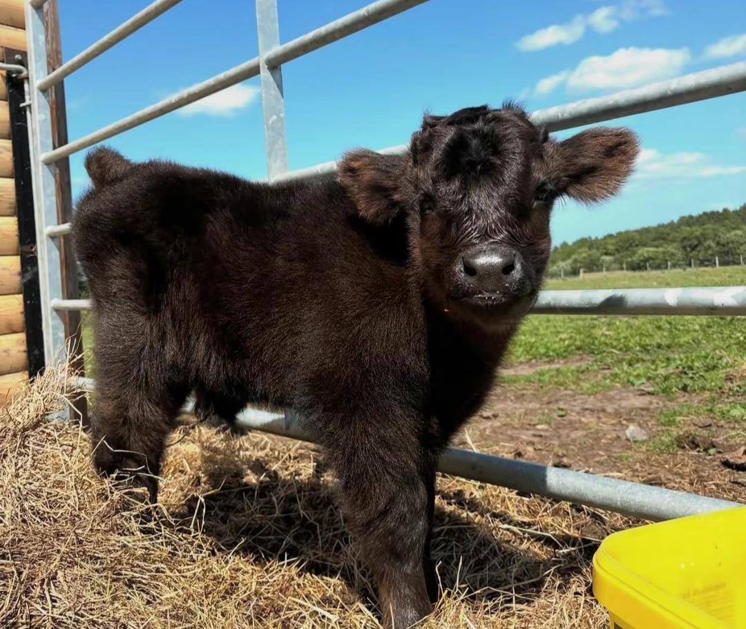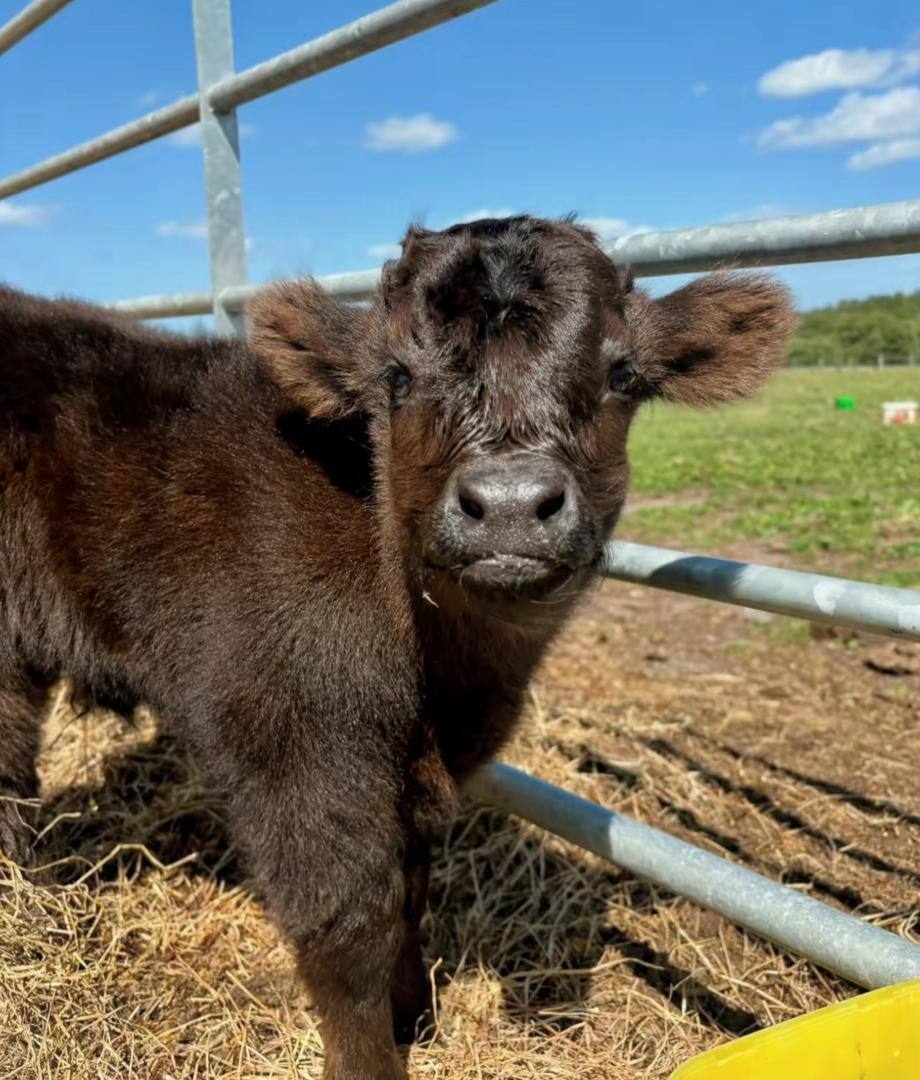 McMoo is a powerful, well-built miniature Highland bull calf with outstanding structure and eye-catching presence. He’s pasture-raised, healthy, and developing into an excellent future herd sire with strong potential for any miniature Highland breeding program.