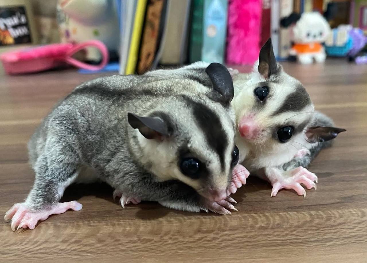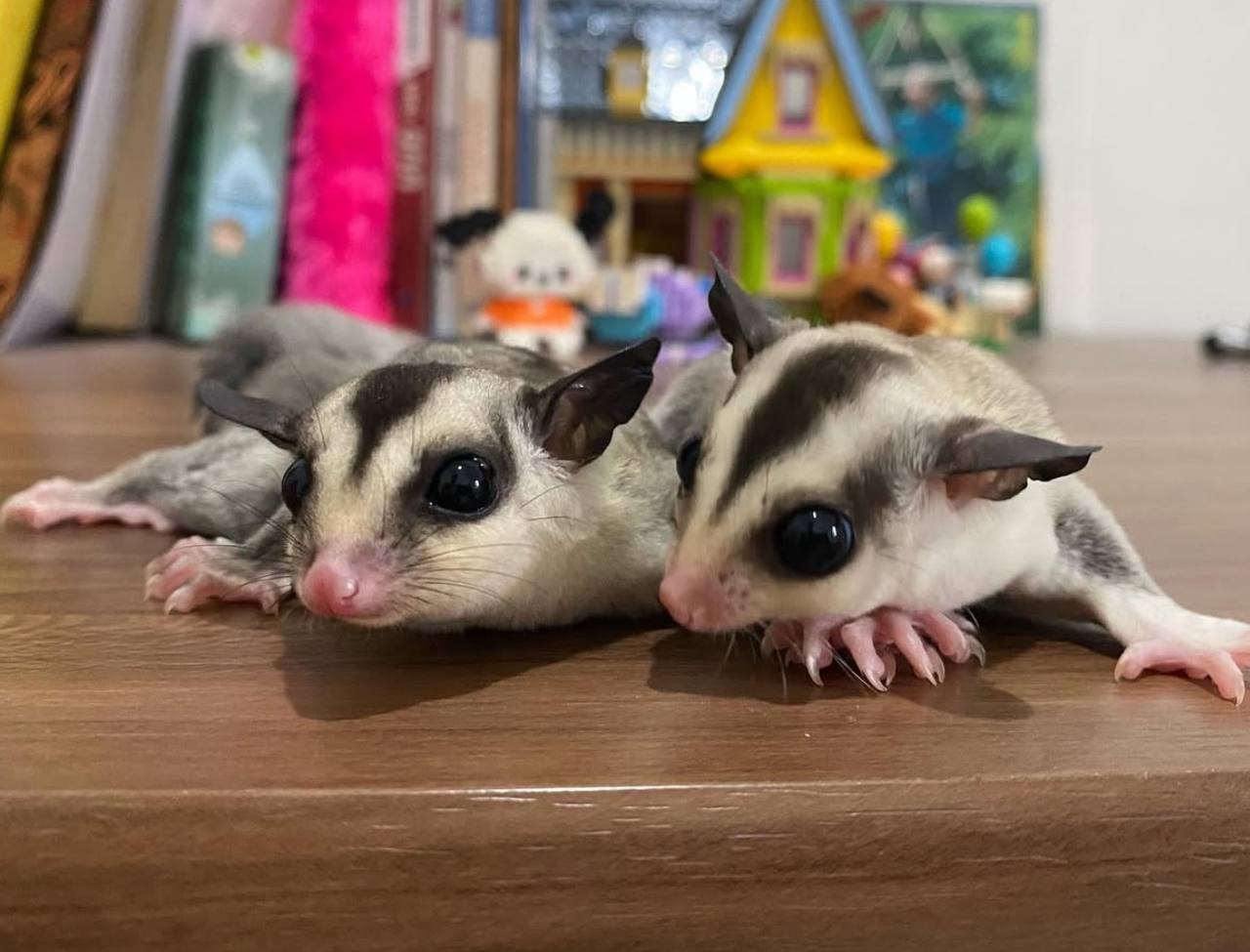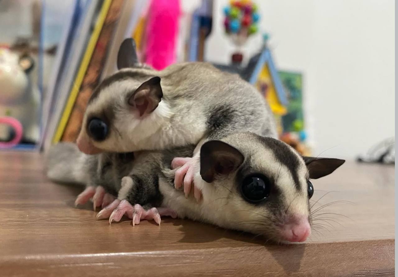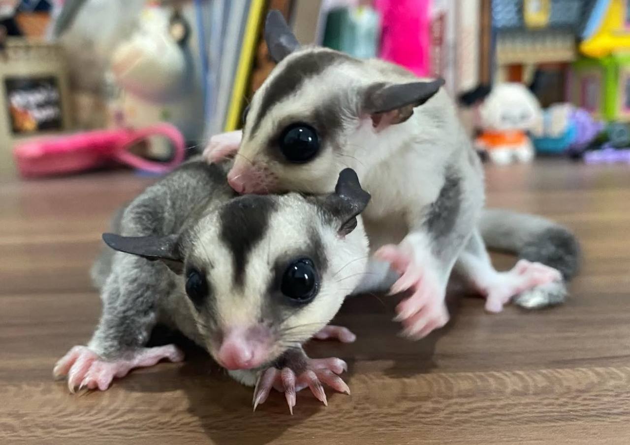 Meet this adorable pair of sugar gliders! Hand-raised, playful, and socialized together, they’re ready to bring double the fun and companionship to a loving home.